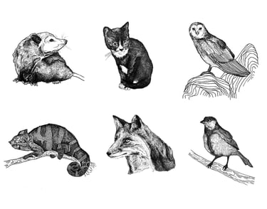 Detailed animal drawings for a wide range of projects - privately commissioned art, editorial features, playing cards, and more.