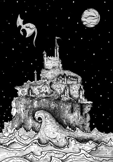 The surreal ink drawings that focus on atmosphere and detail, creating dreamlike worlds suitable for editorial design, merchandise, private commissions, and more.