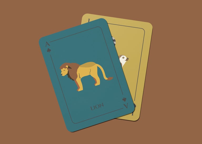 Among several decks I designed for this playing card company, one deck featured animal illustrations. All illustrations were digitally made by me, as was the card layout.