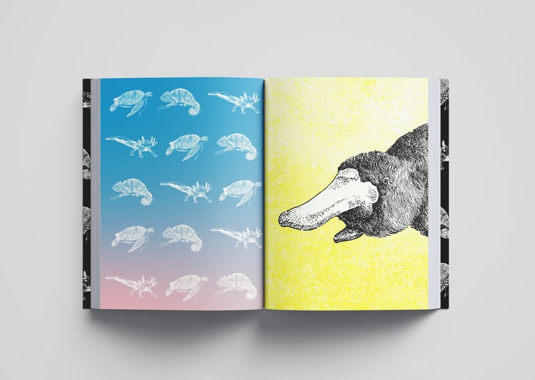 As a part of a self-initiated project, I have used these illustrations for a modern take on an animal encyclopedia, showcasing their potential for editorial layouts and patterns.