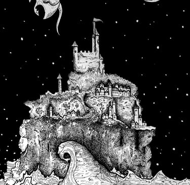The surreal ink drawings that focus on atmosphere and detail, creating dreamlike worlds suitable for editorial design, merchandise, private commissions, and more.