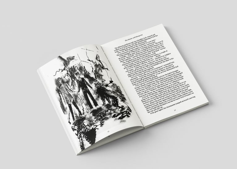 Narrative work that aims to capture the atmosphere of storytelling, with an emphasis on expressive characters used for logos and editorial design.